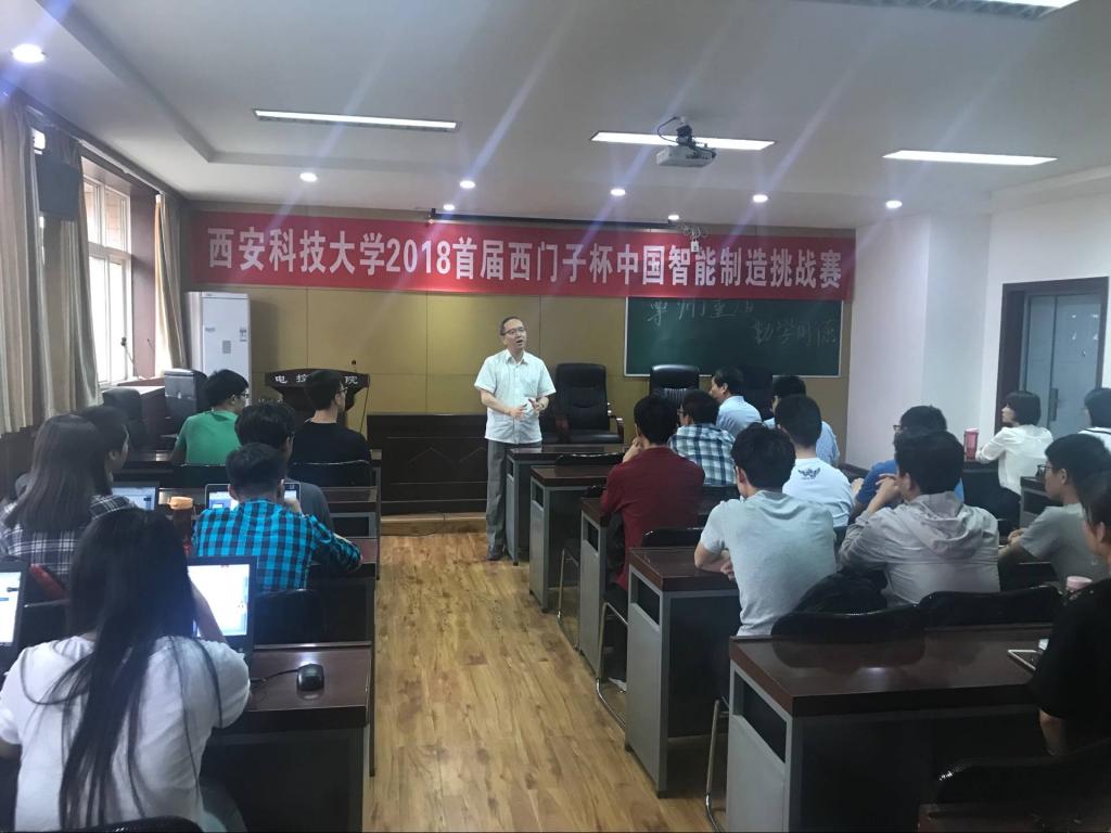 此次大赛由电控学院王再英教授主持,部分教师作为技术指导以及参赛评委。比赛过程由参赛学生现场进行作品展示、功能讲解,评委老师向参赛学生提问问题,并为选手们的作品提出宝贵的建议。获奖选手将于7月份参加在北京举办的教育部2018年第十二届“西门子杯”中国智能制造挑战赛。