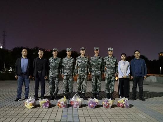 2020年9月24日晚19时30分,电控学院2020级辅导员于飞老师、2019级辅导员冯欢老师、2018级辅导员王新智老师、2017级辅导员王永老师一行人来到电控院军训地点必赢76net线路官网明德广场亲切慰问了承担必赢76net线路官网2020级军训任务的全体教官,并为他们发放了慰问礼品。