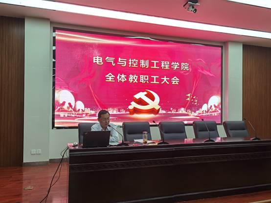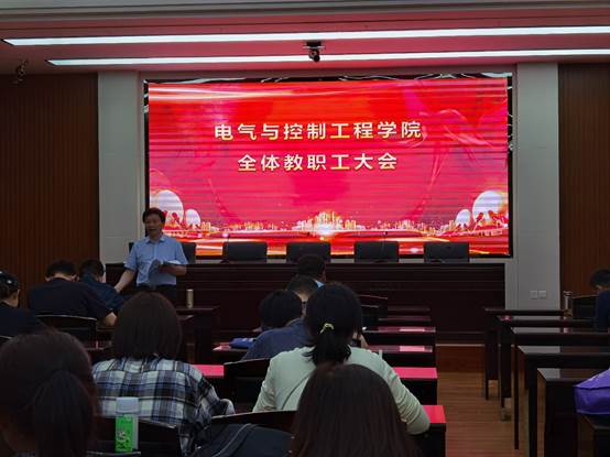 2021年5月8日下午16:00,电控学院于雁塔校区图书馆二楼报告厅召开全院教职工大会。出席会议的有学院全体教职工,会议由院党委书记杨华主持。