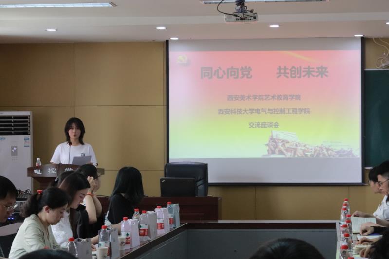 我院党委副书记丁铂对学校及学院基本情况进行了介绍,并结合团日活动和党史学习特色活动进行了经验分享。随后西安美术学院艺术教育学院党总支副书记傅滨老师也对艺术教育学院进行了介绍,并分享了艺术类学生思想教育工作经验,并就党史学习教育开展情况进行了交流。