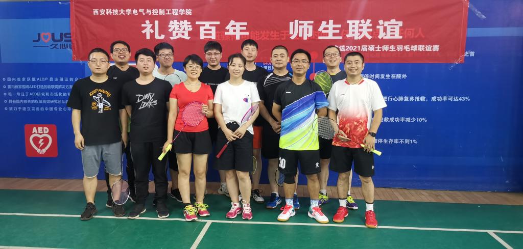 为了庆祝建党100周年,并增进毕业季师生交流、互动,丰富学院教职员工和学生体育文化生活,2021年6月30日晚,在爱康羽毛球馆举行了电控学院“礼赞百年,师生联谊”2021届硕士毕业师生羽毛球联谊赛,十余名师生参加了本次比赛。