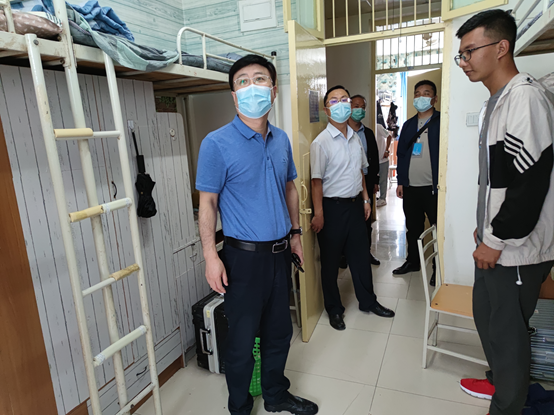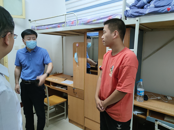 2021年9月1日下午15:30,校党委副书记、纪委书记、监察专员王辉强走进临潼校区骊山校园6号学生公寓,看望走访电控学院新生,电控学院党委书记杨华及新生辅导员陪同,王辉强和同学们亲切交流,希望同学们能够尽快适应大学生活。要求新生辅导员多深入学生宿舍,及时解决新生遇到的问题,帮助新生尽早完成角色转变,开始精彩大学生活。
