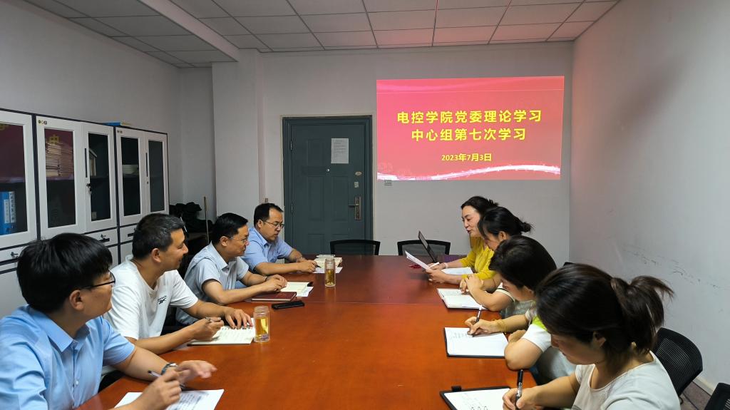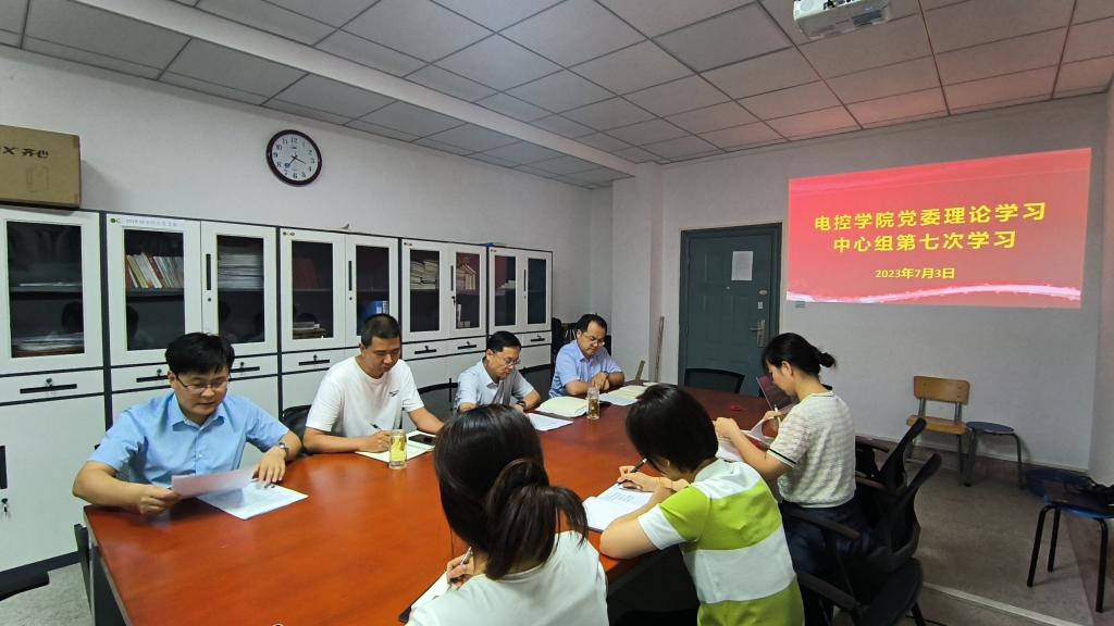 2023年7月3日下午,电控学院党委理论学习中心组在316会议室召开第7次中心组学习,学习由党委书记杨华主持,学院党政班子成员、科级干部和部分支部书记参加了学习。