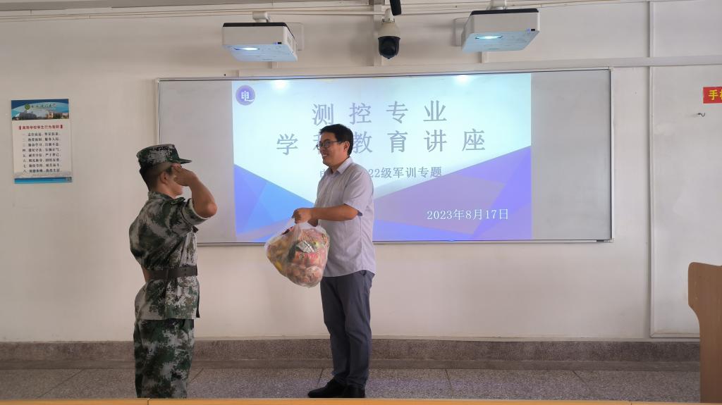 为了丰富2022级学生军训生活,加深学生对本专业学科的认识和理解,2023年8月17日下午,电控学院再骊山校园3号教学楼举办了各专业学科教育讲座。学院党委副书记马婧智闻,系部主任李磊、张玉峰、杨龙海,学术方向带头人刘宝,2022级辅导员丁元、赵晨,全体教官及参训学生参会。