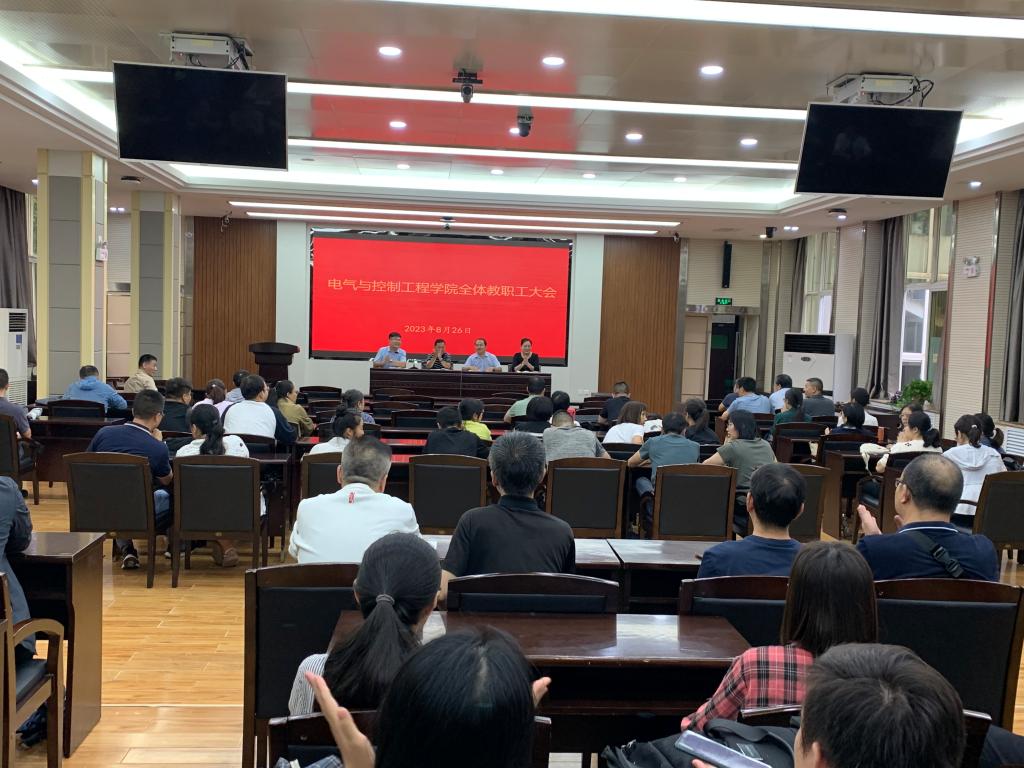 8月26日下午,电控学院在雁塔校区图书馆二楼报告厅召开全体教职工大会,学院班子成员、全体教职工参加。会议由学院党委书记杨华主持。