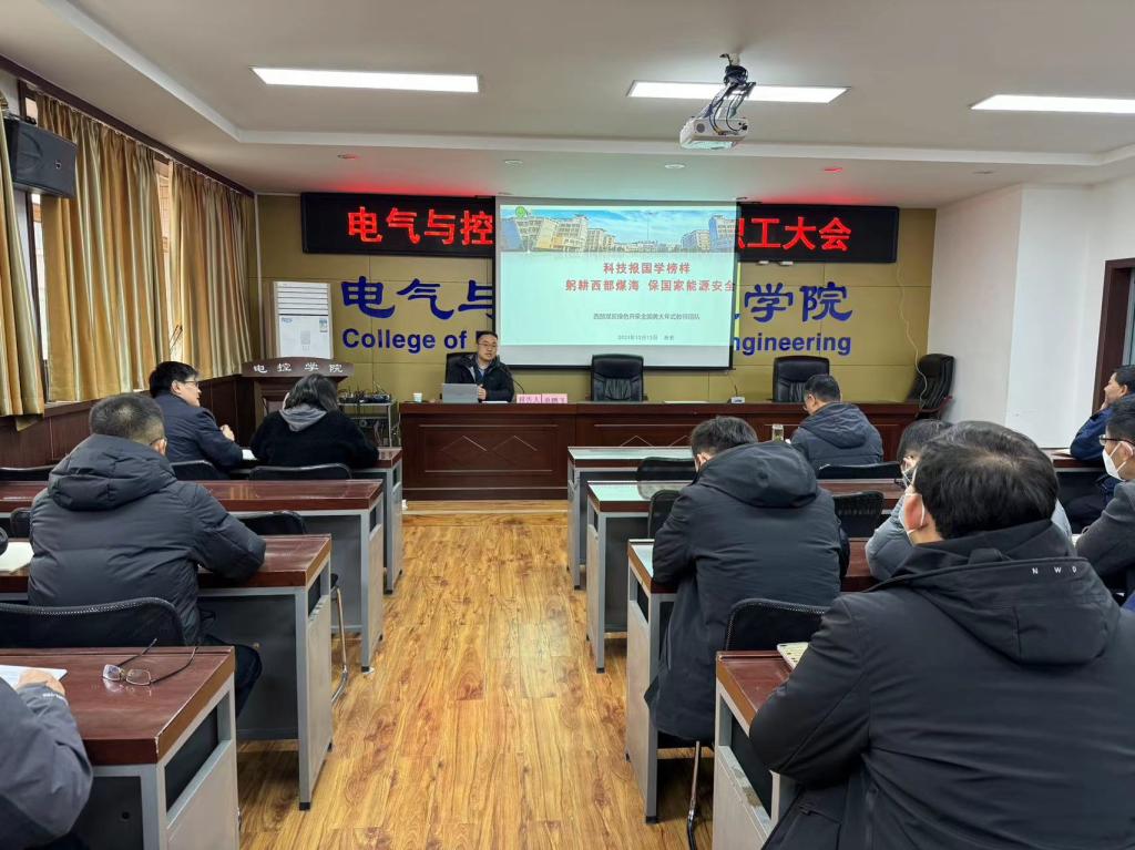 必赢官网全国黄大年式教师团队“西部煤炭绿色开采教师团队”骨干成员单鹏飞教授以“科技报国学榜样,躬耕西部煤海,保国家能源安全”为题,从团队沿革、科技创新、服务煤矿、发展方向等几个方面,给我学院师生做了一场精彩的报告。