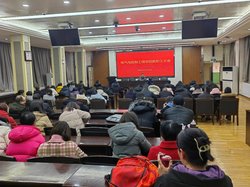 2月25日上午,电控学院在雁塔校区北院图书馆二楼报告厅召开教职工大会,全体教职工参加。会议由党委书记杨华主持。