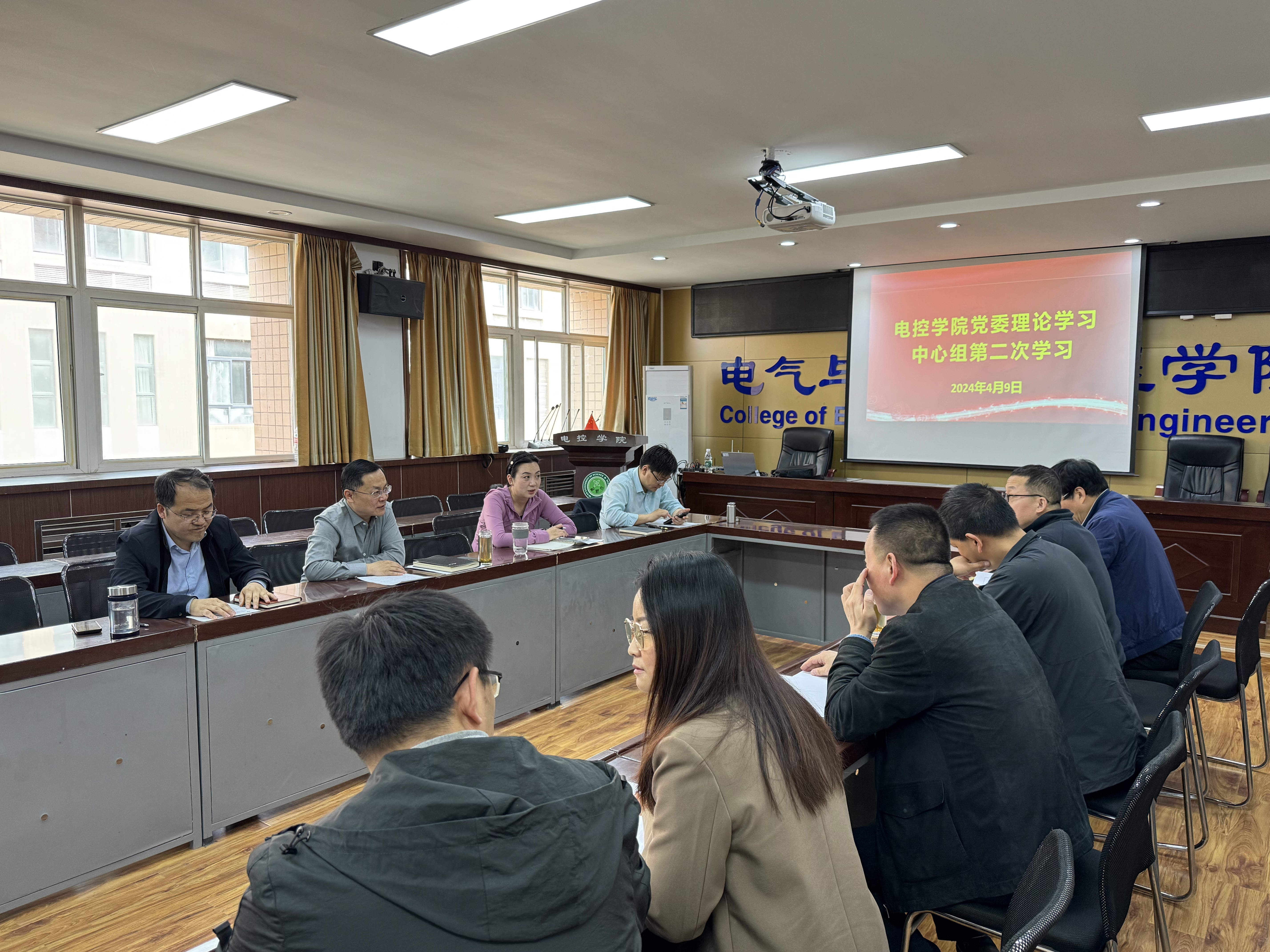 2024年4月9日上午,电控学院党委理论学习中心组在骊山校园17号教学楼318召开第2次中心组学习。学院班子成员、党委委员、科级干部和教工支部书记参加了学习。学习由党委书记杨华主持。