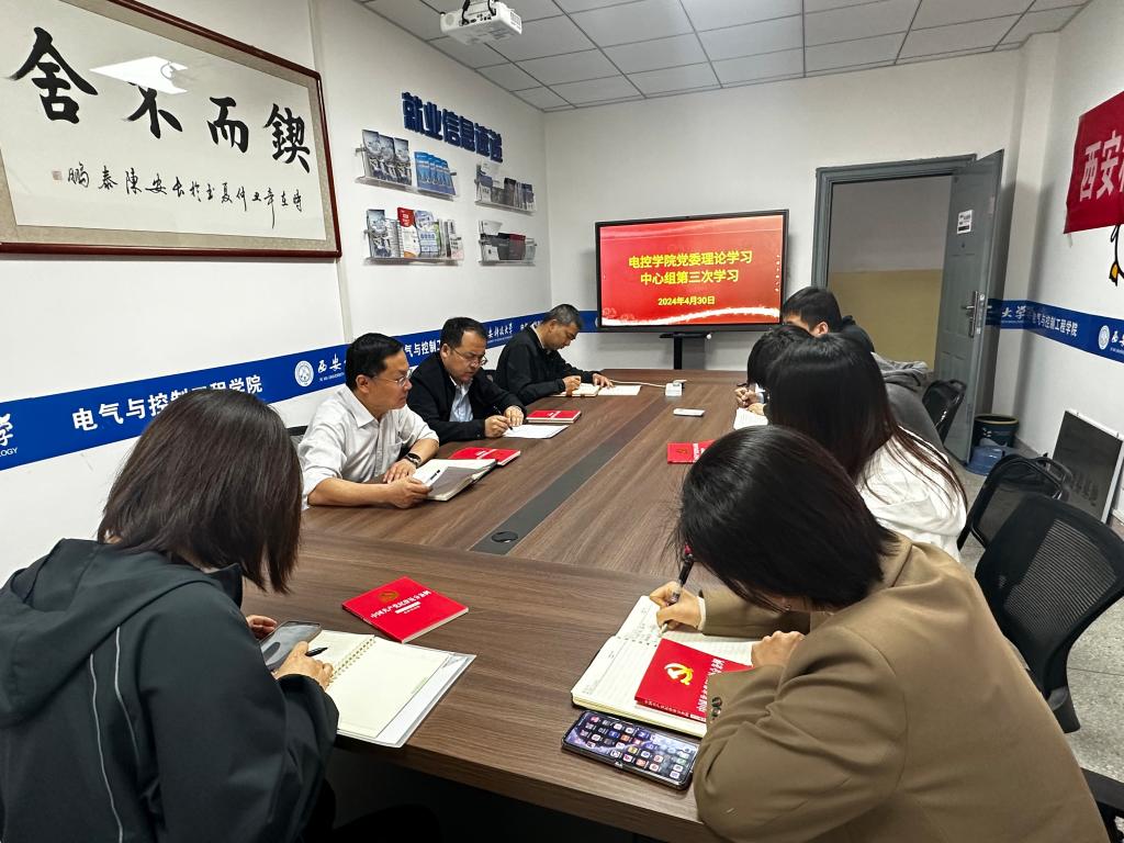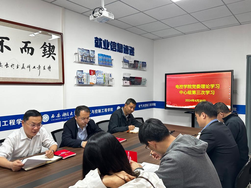 2024年4月30日上午,电控学院党委理论学习中心组在骊山校园17号教学楼318召开第3次中心组学习。学院班子成员、党委委员、科级干部和教工支部书记参加了学习。学习由党委书记杨华主持。