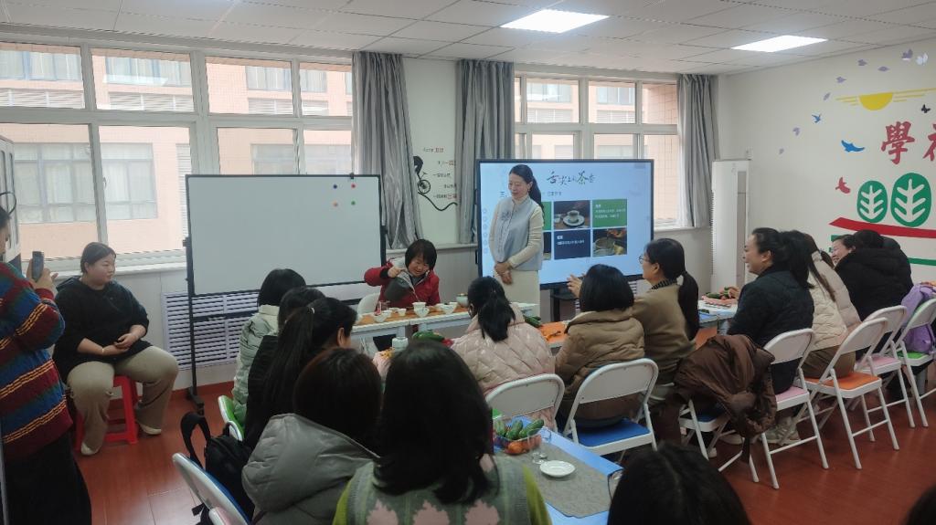 我们邀请到西安市旅游民宿协会副会长、数字木兰(支付宝)民宿管家培训陕西地区培训茶艺讲师—格子女士作为主讲嘉宾,围绕茶叶起源与发展、茶与健康,为大家普及了茶叶分类依据、各类茶叶的特点、具体茶叶品种、茶具的选择与使用方法、水温及冲泡时间的掌握等茶艺入门知识,并通过现场示范展示了茶艺礼仪和完整的泡茶步骤。温杯、投茶、摇香、冲泡、出汤……在场教职工跟着格子老师的讲解和动作感受茶艺的魅力,沉浸在茶文化的奇妙世界中。