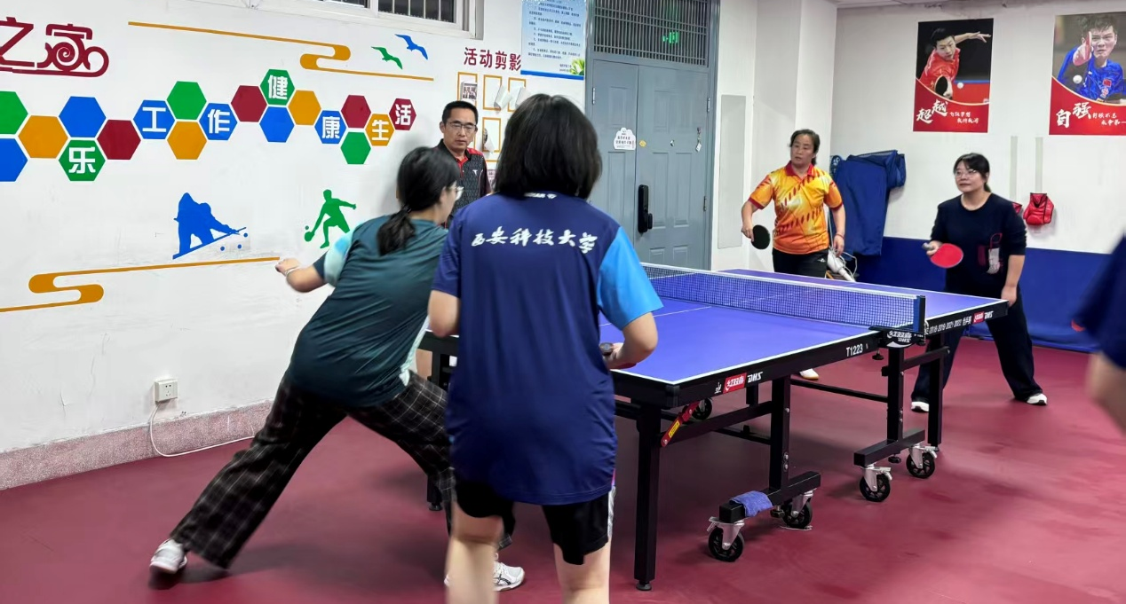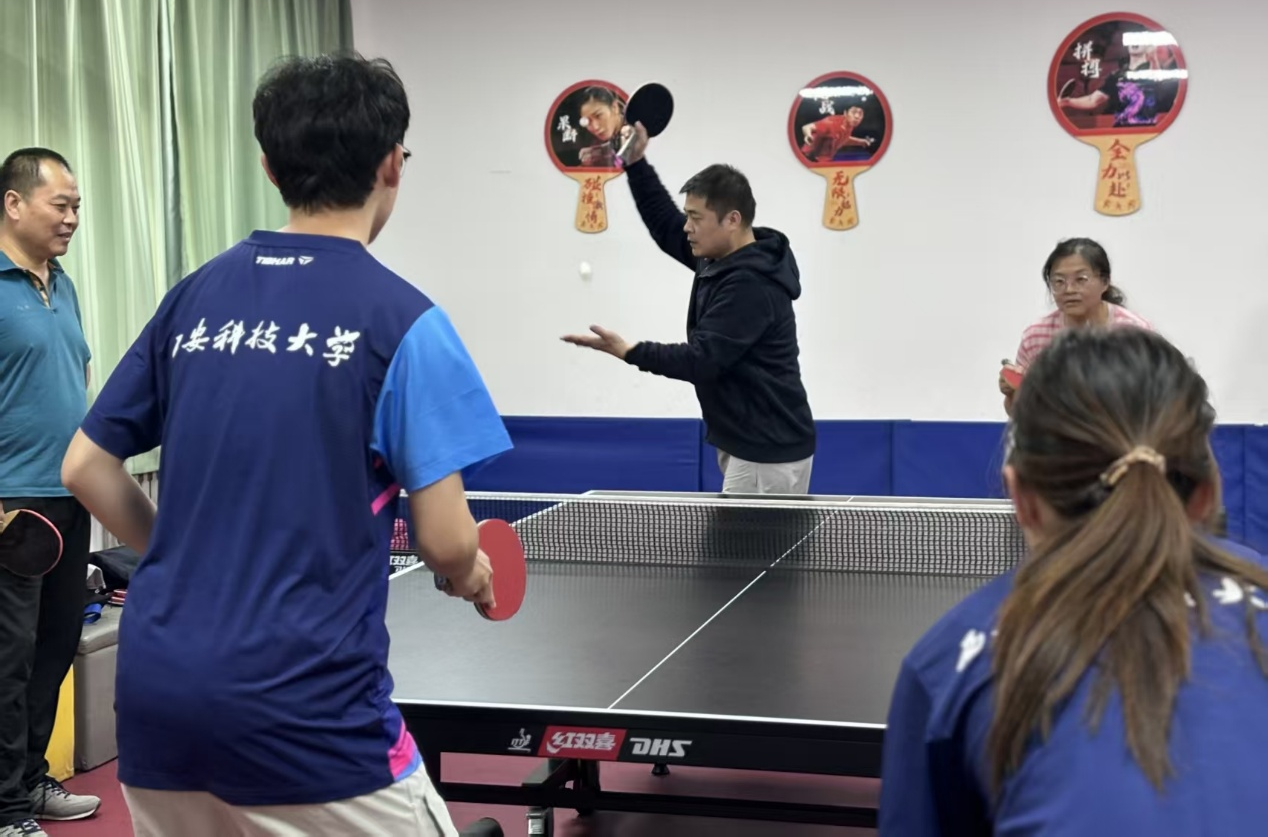 为丰富校园文化生活,增强学院师生友谊,弘扬乒乓文化,2025年11月12日下午,电控学院工会在骊山校园学院教工之家策划了一场师生乒乓球混合团体对抗赛,本次赛事吸引学院教工和学生共20人踊跃参赛。
