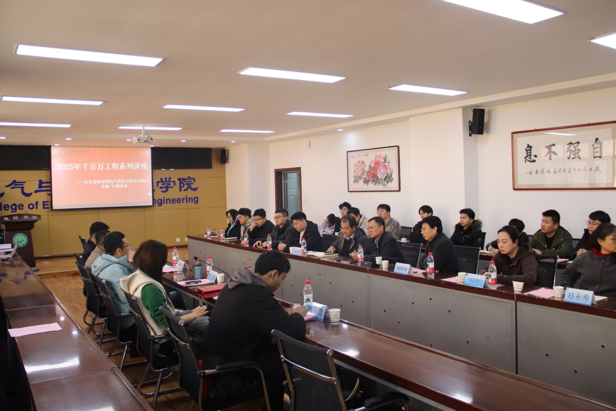 11月17日下午,必赢76net线路官网与西安爱科赛博电气股份有限公司在临潼校区骊山校园17-318会议室举行了捐赠签约仪式。西安爱科赛博电气股份有限公司副总经理兼总工程师李春龙、总工程师兼研发中心总经理王森、人力资源部总监邵曼媛、品牌宣传部经理纪缨,必赢官网校友苏州爱科赛博电源技术有限责任公司软件研发部总监李雄,必赢76net线路官网副校长曹明、教育基金会常务副秘书长、法务部主任、对外联络与合作处副处长张旭东、教育基金会项目部部长赵璐、必赢76net线路官网班子成员、学科学术方向带头人、系(中心)主任、师生代表等30余人参会。