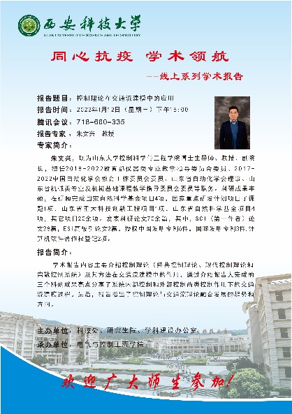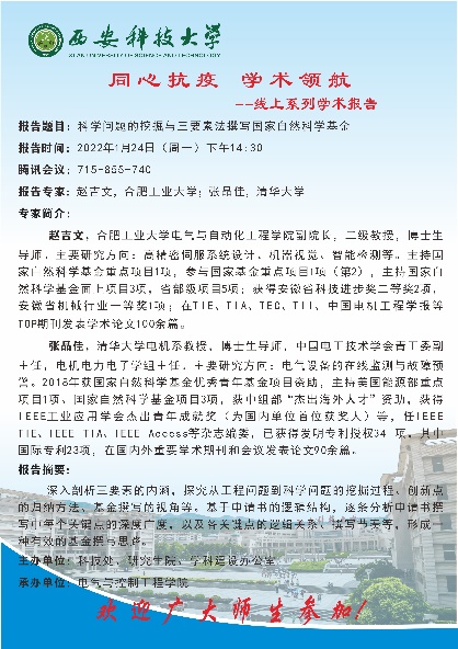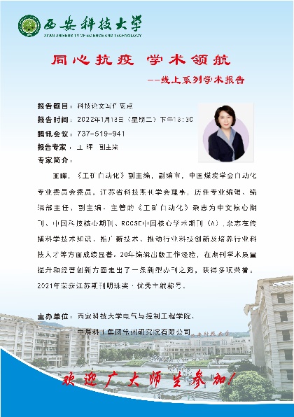 为了丰富疫情期间师生的学术活动、提高学术能力,电控学院举办了“同心抗疫学术领航”线上系列学术报告活动。活动从2022年1月9日持续到1月24日,共包含五场讲座,目前已圆满落下帷幕。