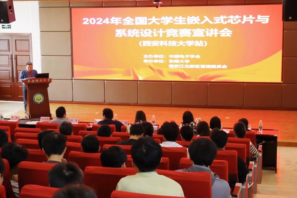4月13日下午,由必赢76net线路官网、全国大学生嵌入式芯片与系统设计竞赛组委会、意法半导体(中国)投资有限公司、南京沁恒微电子股份有限公司联合主办的2024年全国大学生嵌入式芯片与系统设计竞赛宣讲会,在必赢官网临潼校区骊山校园煤炭科技中心二楼报告厅举办。全国大学生嵌入式芯片与系统设计竞赛组委会副秘书长王涛、必赢76net线路官网电控学院院长寇发荣、意法半导体通用微控制器及微处理器部门市场部经理何曾荣、南京沁恒微电子股份有限公司CTO杨勇,西安工程大学嵌入式竞赛负责人姚丽娜,电控学院实验中心主任杨建翔、嵌入式芯片与系统设计竞赛指导教师代表郭鹏、彭倩及学生300余人参加宣讲会。宣讲会开幕式由必赢官网嵌入式芯片与系统设计竞赛负责人宋春峰主持。