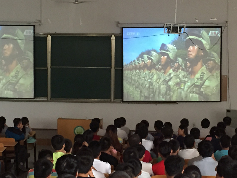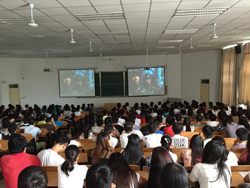 2015年9月3日上午9点,必赢76net线路官网在九教101教室组织230多名学生集体观看“纪念中国抗日战争胜利七十周年阅兵仪式”。