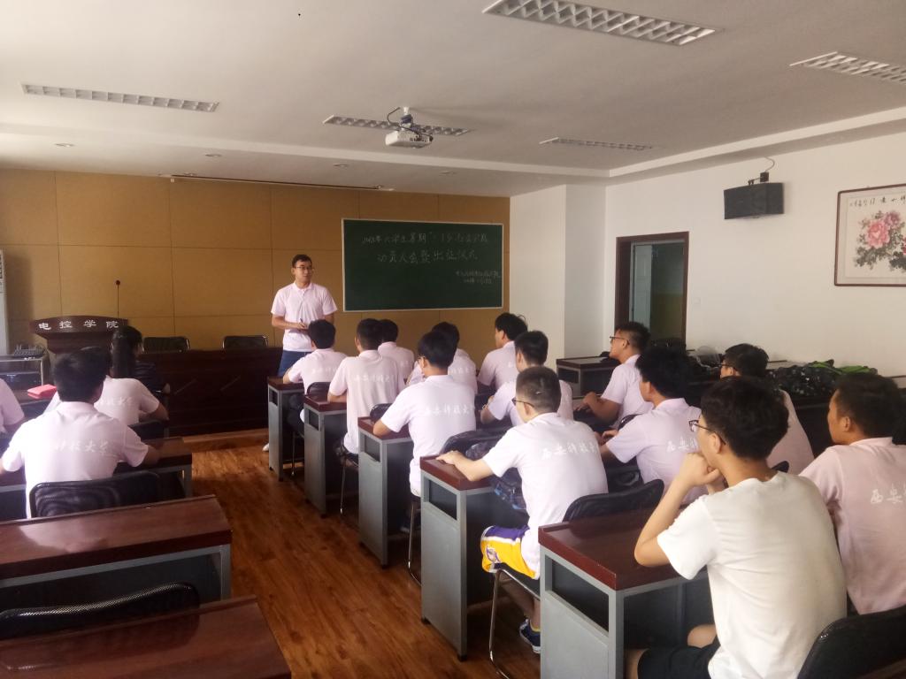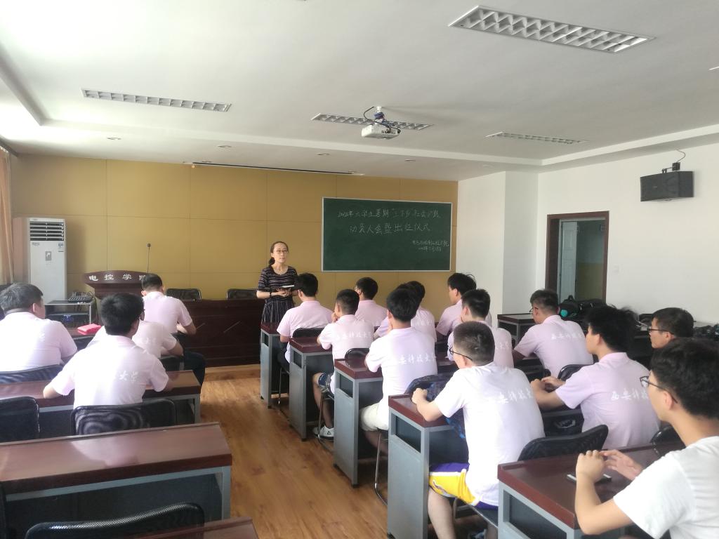 2018年7月19日中午,必赢76net线路官网2018年暑期大学生赴江苏南通创业就业实践团动员大会暨出征仪式在临潼校区17教举行。电控学院团委书记常瑜老师,实践团队的指导老师李逸老师以及社会实践团全体队员参加了本次动员大会。