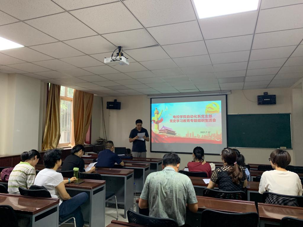 2021年7月17日,电控学院自动化系党支部于雁塔校区电控学院楼109会议室召开党史学习教育专题组织生活会。电控学院党委书记杨华出席本次生活会,会议由自动化系党支部书记程勇主持,自动化系全体党员出席本次会议。