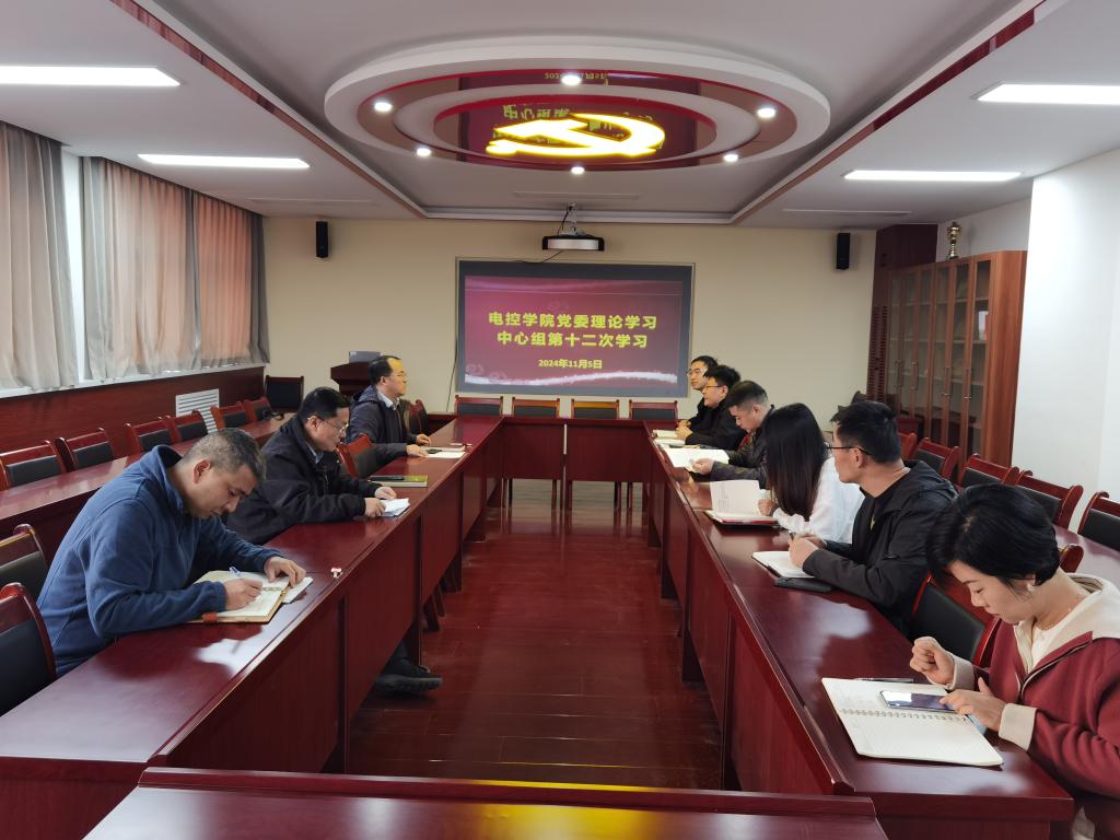 2024年11月5日下午,电控学院党委理论学习中心组在骊山校园17号教学楼323会议室召开第12次中心组学习。学院班子成员、党委委员、科级干部和教工支部书记参加了学习。学习由党委书记杨华主持。