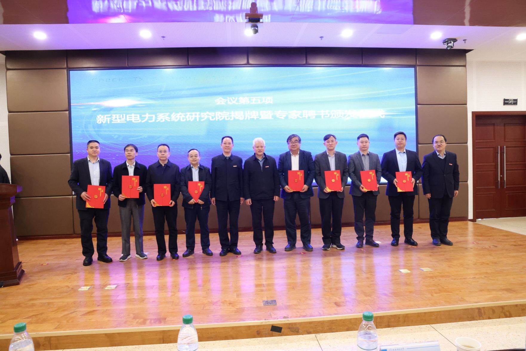 曹明和必赢76net线路官网负责人为新型电力系统研究院成立揭牌,邓军和曹明为研究院特聘专家颁发了聘任证书。