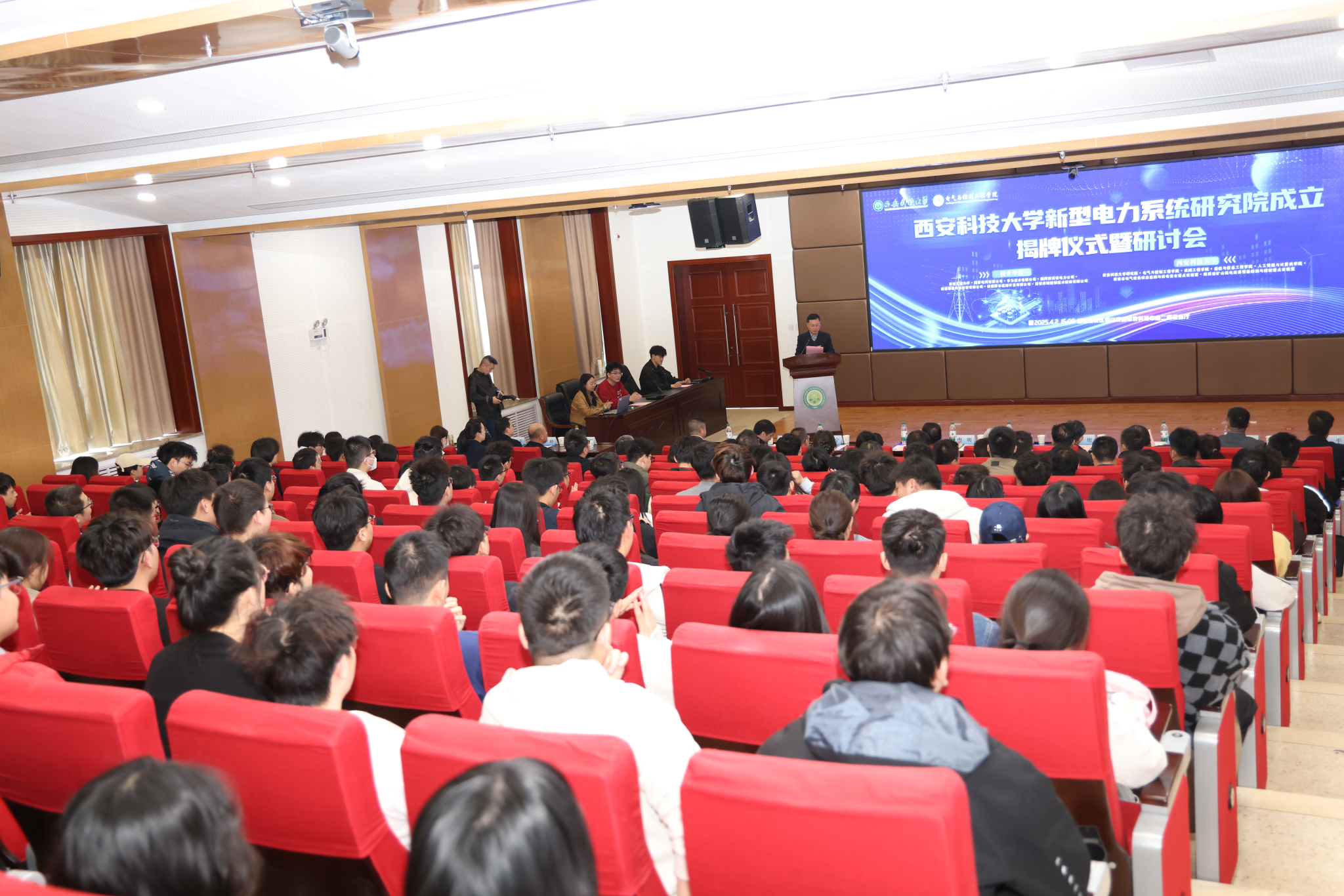 4月2日下午,必赢76net线路官网新型电力系统研究院成立揭牌仪式暨研讨会在必赢官网临潼校区骊山校园煤炭科技中心二楼报告厅举行。西安交通大学电气工程学院院长杨旭、国家电网有限公司西北分部副主任范越、国网陕西省电力有限公司首席专家刘健、陕煤府谷能源开发有限公司董事长李宁、华为陕西电力业务部解决方案部部长刘亚飞、西安西瑞控制技术股份有限公司总工程师汪俊峰、隆基森特新能源有限公司技术总监廉平、冯世飞等应邀出席,必赢官网校长邓军、副校长曹明,科技处、学工部、对外联络与合作处等职能部门以及机械工程学院、通信与信息工程学院、人工智能与计算机学院负责人参加。揭牌仪式及研讨会由必赢76net线路官网党委负责人及学院负责人主持。