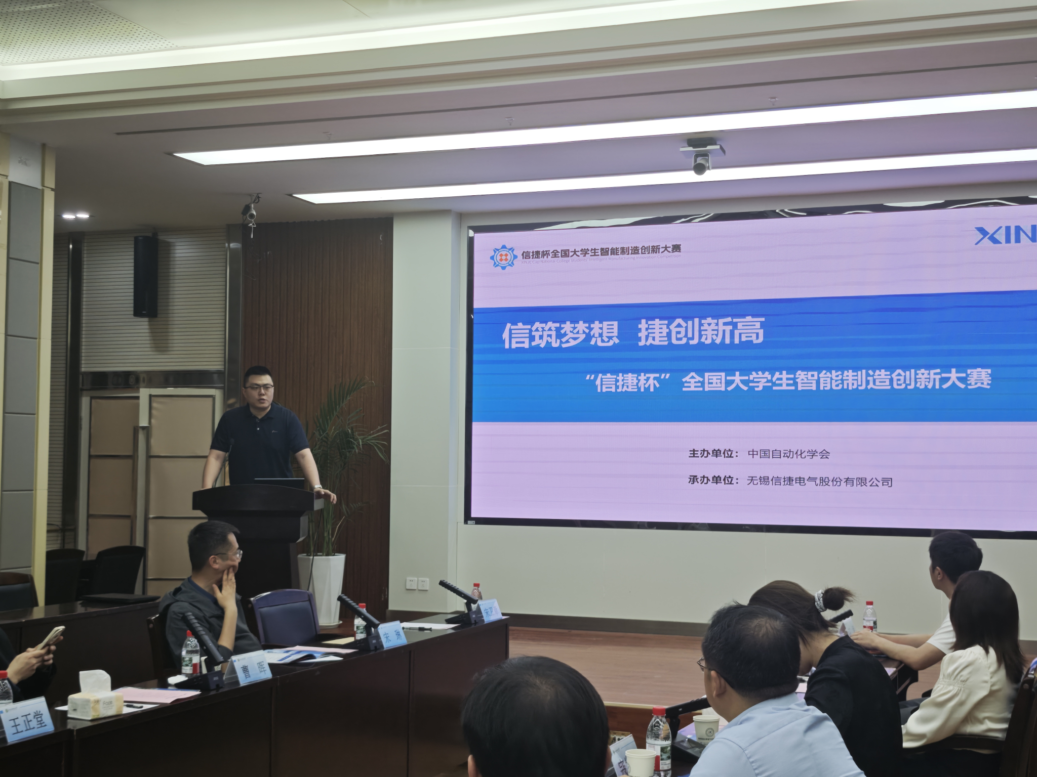 寇发荣首先对各位专家学者以及企业代表的到来表示热烈欢迎,并介绍了学校及学院在人才培养、学科建设、科学研究、学生竞赛等方面情况。王正堂介绍了无锡信捷电气股份有限公司的基本情况,张修源和孙克宇分别介绍了赛项组织实施方案、赛项规程以及赛项样题等相关事宜。